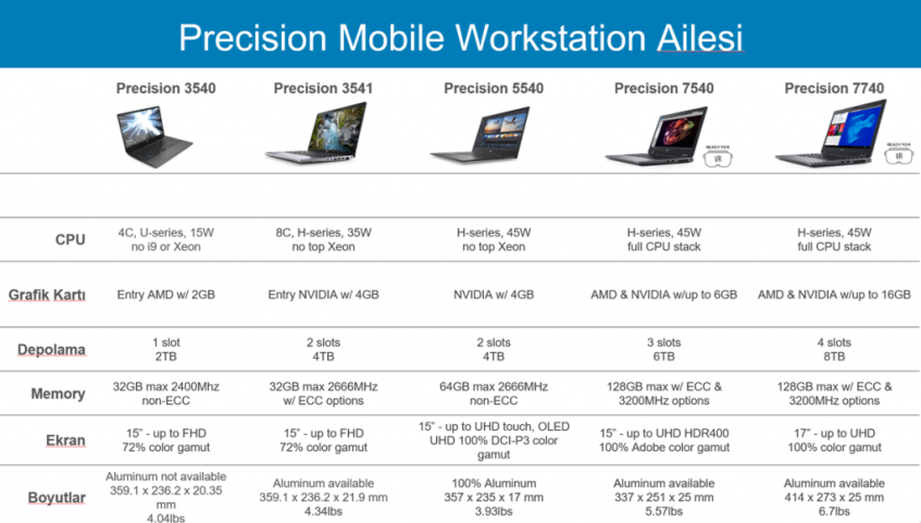 Yeni nesil Dell Precision Mobile Workstation Ürün Ailesine geçelim,