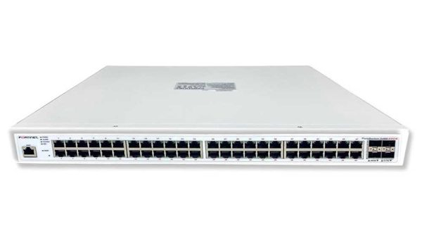 FortiGate entegrasyonlu, 48 portlu Gigabit PoE kurumsal ağ anahtarı.